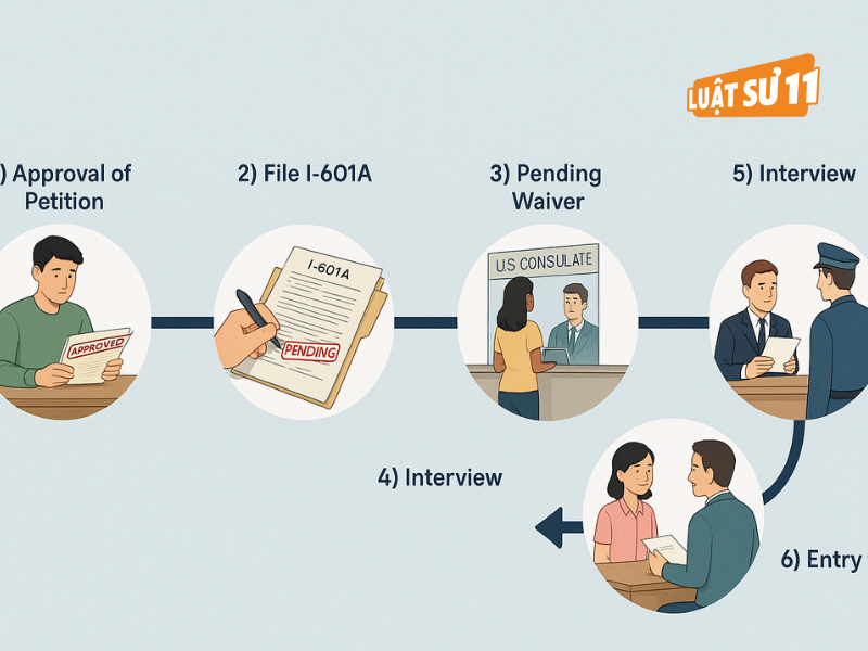 Quy trình thường gồm: nhận thông báo chấp thuận bảo lãnh – nộp I-601A – chờ xét waiver – nếu chấp thuận, chuyển bước lãnh sự – phỏng vấn – nhập cảnh. Lệ phí thay đổi theo thời kỳ, cần kiểm tra trước khi nộp. Thời gian xét có thể kéo dài; quản trị kỳ vọng bằng lịch cập nhật định kỳ. Quan trọng: I-601A chỉ xử lý unlawful presence; nếu tồn tại lý do bất hợp lệ khác, cần chiến lược riêng. Nhắc lại thông điệp của “10 sai lầm khiến I-601A bị từ chối theo luật sư di trú Mỹ (B3)”: đừng để bị từ chối vì chủ quan với mốc thời gian, thiếu tài liệu hoặc không cập nhật thay đổi hoàn cảnh.