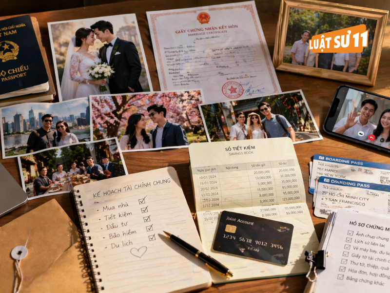 Bằng chứng quan hệ thường được đánh giá cao khi thể hiện quá trình chung sống hoặc duy trì liên hệ thực tế. Đó có thể là hình ảnh gia đình, lịch sử liên lạc, kế hoạch tài chính chung, giấy tờ đi lại cùng nhau hoặc các chứng cứ đời sống hôn nhân khác.