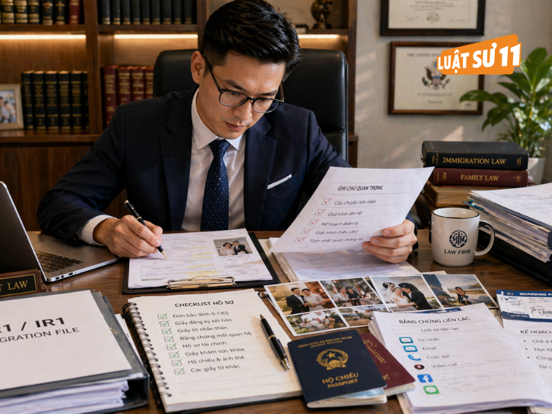Xin visa định cư Mỹ diện CR1/IR1 năm 2026 cần chuẩn bị đúng hồ sơ bảo lãnh vợ chồng, chứng minh hôn nhân thật và theo dõi thời gian xét duyệt. Luật sư 11 phân tích chi tiết, dễ hiểu.
