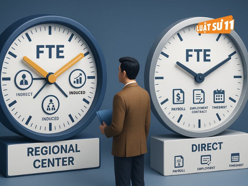 Regional center thường được phép tính tổng hợp: việc làm trực tiếp do doanh nghiệp tạo ra và việc làm gián tiếp/induced thông qua chi tiêu xây dựng – vận hành (theo mô hình kinh tế được chấp thuận). Điều này giúp dự án quy mô lớn dễ đạt mốc 10 FTE cho mỗi nhà đầu tư. Ngược lại, direct chủ yếu dựa vào việc làm trực tiếp ghi nhận trên payroll, hợp đồng lao động và khai thuế. Với đi mỹ diện đầu tư, hiểu đúng cơ chế tính FTE quyết định chiến lược triển khai: chọn dự án có lịch giải ngân gắn với hạng mục sinh việc làm, hoặc tự thiết kế lộ trình tuyển dụng theo quý để bảo đảm minh chứng.
