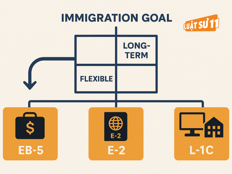 Lộ trình đi mỹ diện đầu tư được so sánh toàn diện giữa EB-5, E-2 và L-1C: vốn, thời gian, quyền lợi, rủi ro – tư vấn bởi luật sư Nguyễn Thành Huân, Luật sư 11.