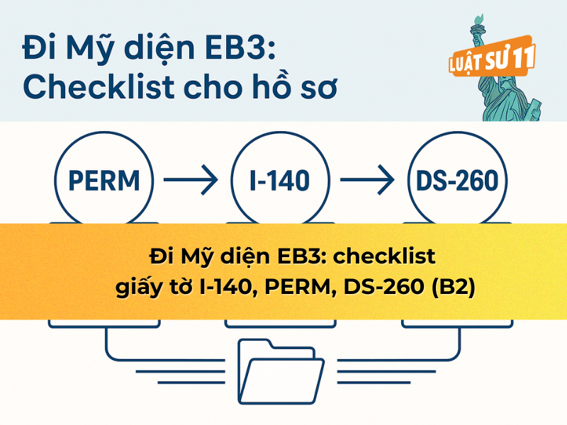 Một bộ hồ sơ đi Mỹ diện EB3 thành công là kết quả của kỷ luật giấy tờ và dữ liệu nhất quán giữa PERM, I-140 và DS-260. Khi bạn chuẩn hóa từ bước đầu, các chặng sau sẽ nhanh, gọn và ít rủi ro hơn. Theo luật sư Nguyễn Thành Huân – Luật sư 11, bí quyết là: checklist rõ ràng, lưu trữ khoa học và kiểm lỗi chéo trước mỗi lần nộp. Cần một bảng kiểm cá nhân hóa cho vị trí và doanh nghiệp của bạn? Hãy liên hệ để được hướng dẫn chi tiết.