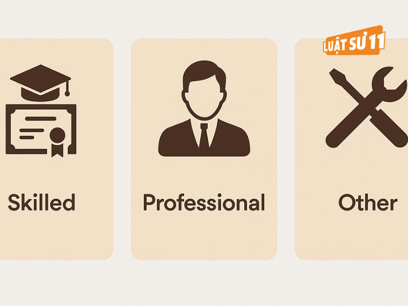 Professional: kế toán viên, kỹ sư, nhà phân tích… yêu cầu bachelor; cần đánh giá tương đương (nếu bằng quốc tế) và bảng điểm.