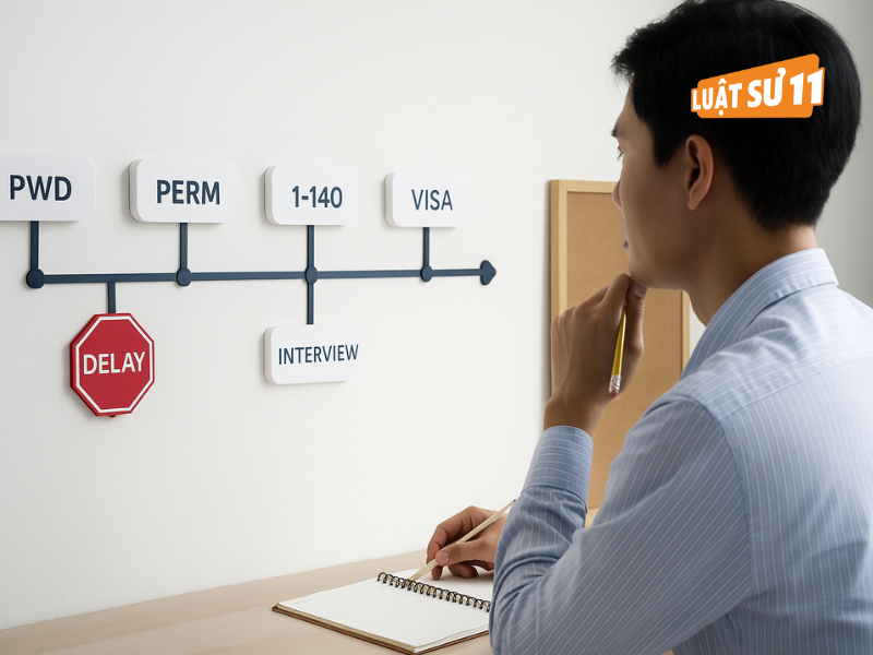 Theo Luật sư 11, nhiều gia đình chỉ tập trung vào Visa Bulletin mà quên mất rằng PWD/PERM chậm hơn dự tính mới là yếu tố kéo dài thật sự; trong khi lịch có thể đang “current” thì hồ sơ vẫn chưa xong PERM để bước tiếp.