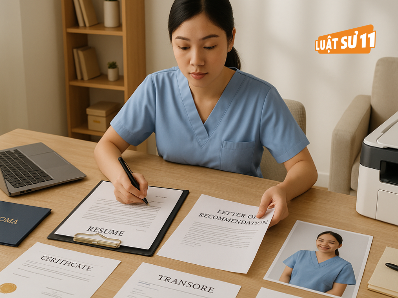Bước 1: Đánh giá điều kiện nghề nghiệp (bằng cấp, kinh nghiệm), khả năng tiếng Anh và phù hợp vị trí. Bước 2: Chuẩn hóa bằng chứng: bảng điểm, mô tả môn học/kinh nghiệm, thư xác nhận công việc, chứng chỉ nghề; dịch – công chứng thống nhất tên. Bước 3: Làm việc với nhà tuyển dụng để chốt mô tả công việc, mức lương, địa điểm, ca làm, phúc lợi; rà điều khoản bồi hoàn chi phí minh bạch. Theo Luật sư 11, họp “khởi động dự án” giúp hai bên đồng bộ kỳ vọng, lịch trình và trách nhiệm, hạn chế tranh chấp về sau.