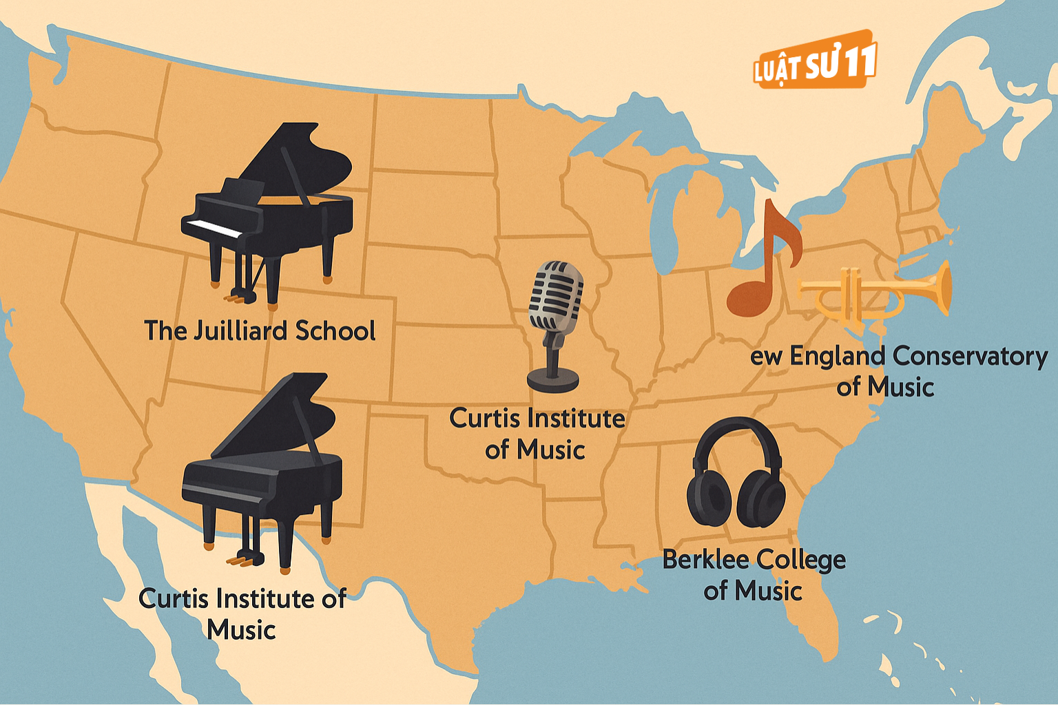 - New England Conservatory of Music (Boston): Đào tạo xuất sắc các lĩnh vực jazz, nhạc cổ điển và các loại hình âm nhạc mới.