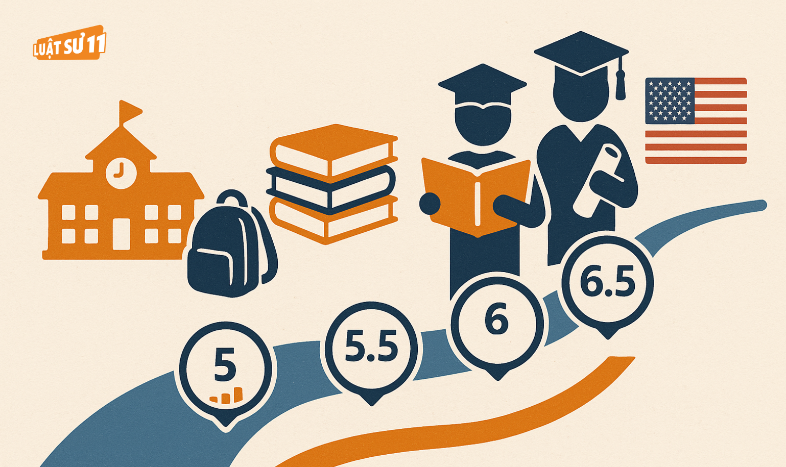 Để trả lời câu hỏi IELTS bao nhiêu để đi du học Mỹ, cần cân nhắc nhiều yếu tố cụ thể của mỗi bậc học, ngành học, và trường đại học tại Mỹ. Có thể thấy, bậc trung học thường không yêu cầu IELTS, bậc Cao đẳng/Dự bị đại học đòi hỏi tối thiểu 5.5, bậc Đại học mức 6.0–6.5, còn sau đại học dao động từ 6.5–7.0, thậm chí 7.5+ cho những ngành cạnh tranh cao. Bạn cũng có thể sử dụng các chứng chỉ thay thế như TOEFL iBT, Duolingo English Test hay PTE Academic nếu cảm thấy phù hợp hơn.