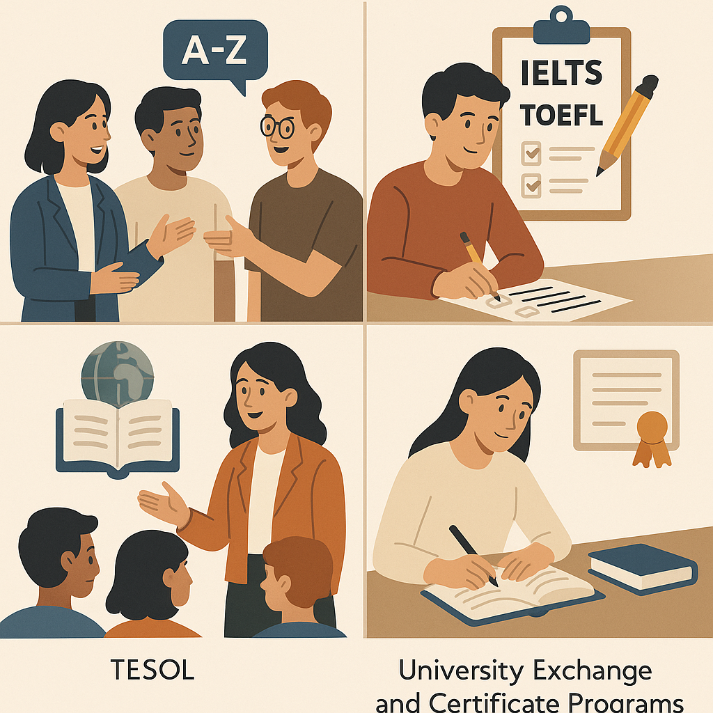 Hiện nay, nhiều cơ sở đào tạo tại Mỹ cung cấp khóa TESOL ngắn hạn. Khóa học tập trung không chỉ vào lý thuyết giảng dạy mà còn hướng dẫn phương pháp phát triển giáo án, kỹ năng đứng lớp và xử lý tình huống. Sau khi hoàn thành, học viên có thể sở hữu chứng chỉ TESOL và bắt đầu sự nghiệp giảng dạy.