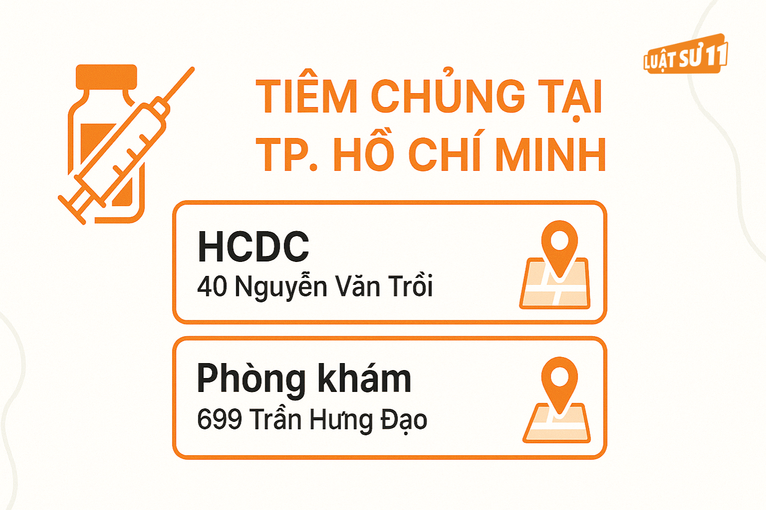 Sau khi có kết quả khám sức khỏe, các bác sĩ sẽ chỉ rõ những mũi tiêm bạn cần bổ sung. Bạn có thể chích ngừa tại nhiều cơ sở trên địa bàn TP. Hồ Chí Minh, song hai địa chỉ chủ yếu và được khuyến nghị nhiều nhất là: