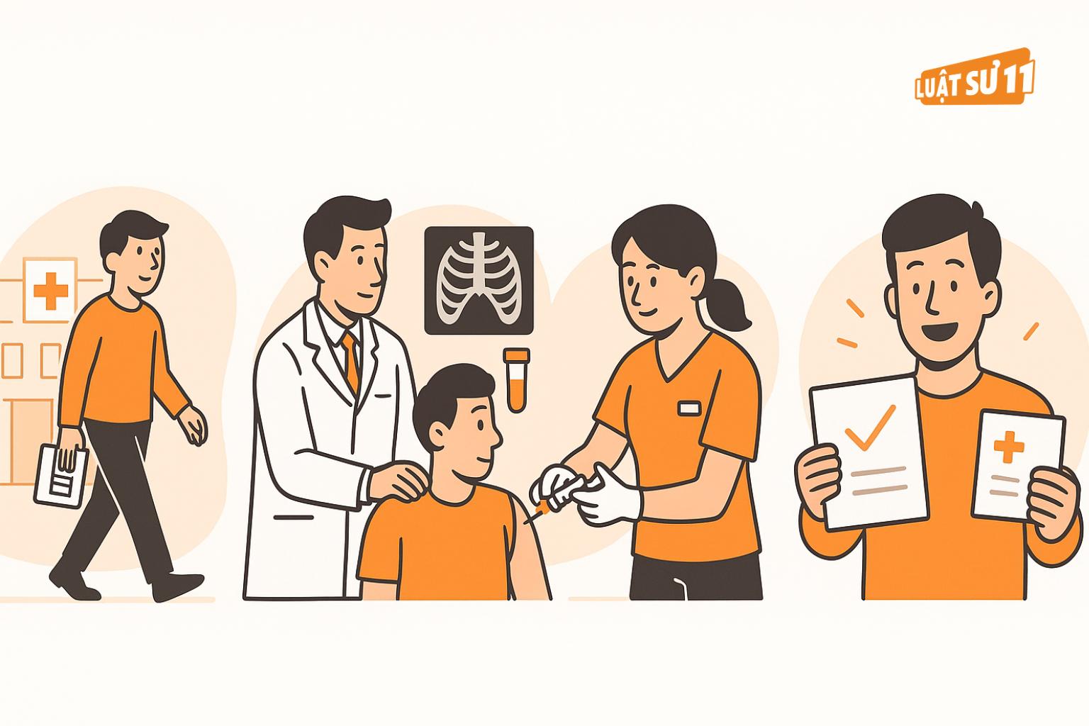 Tại cơ sở khám, bác sĩ sẽ kiểm tra tổng quát (cân nặng, chiều cao, huyết áp, đo thị lực,…) và thực hiện các xét nghiệm bắt buộc như: chụp X-quang phổi, xét nghiệm máu, kiểm tra bệnh lao, đồng thời xem xét lịch sử tiêm chủng để xác định bạn cần chích ngừa thêm những loại vắc-xin nào. - Bước 3: Tiến hành chích ngừa