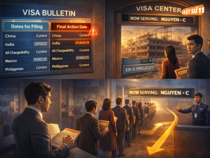 Đọc Visa Bulletin theo hai bảng quan trọng: Final Action Date (ngày cắt phê duyệt) và Dates for Filing (ngày đủ điều kiện nộp). Việc này quyết định khi nào bạn phỏng vấn hoặc điều chỉnh tình trạng, từ đó bố trí kế hoạch học hành, tài chính cho con. So với EB-3 – vốn phụ thuộc tiến độ PERM/I-140 và lịch visa theo quốc gia – EB-5 còn phụ thuộc tiến độ chi tiêu/việc làm. Đây là lý do “Cập nhật quy định EB-5 hiện hành cho Đi Mỹ diện đầu tư (liên hệ EB-3)” khuyên theo dõi lịch visa hàng tháng và đồng bộ với báo cáo tiến độ dự án.