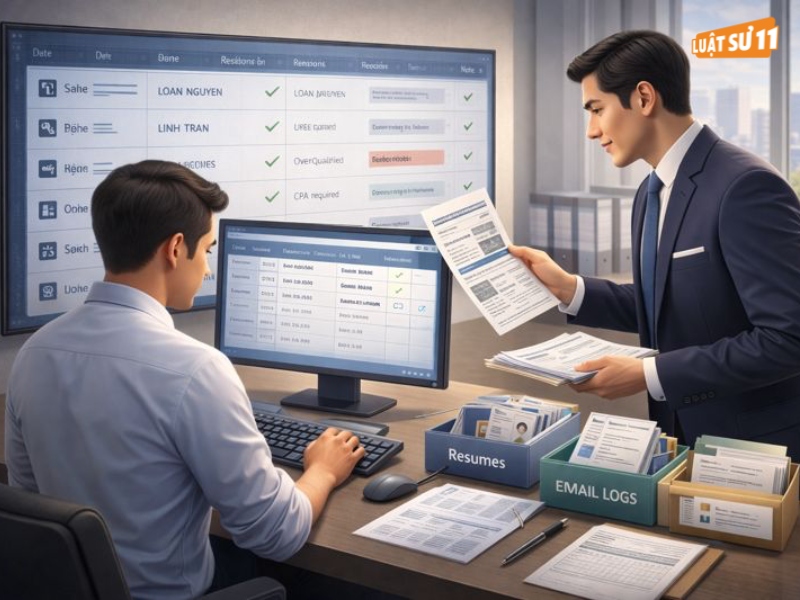 Luật sư: lập lịch đăng (đúng số ngày/khoảng cách), duyệt nội dung bám JD/PWR, chuẩn hóa “nhật ký tuyển dụng” (hóa đơn, ảnh màn hình, bản in, log email, bảng kê ứng viên).