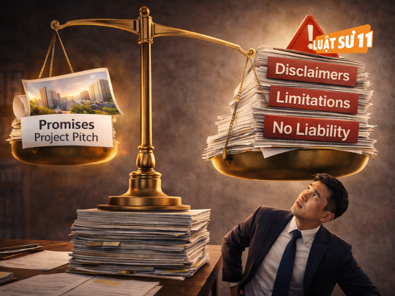Một số hợp đồng viết rất khéo: ở phần giới thiệu, dự án mô tả tương lai “màu hồng”; nhưng ở phần pháp lý lại gài điều khoản miễn trừ rộng, đẩy rủi ro về phía nhà đầu tư. Hãy đặc biệt chú ý 3 nhóm điều khoản: