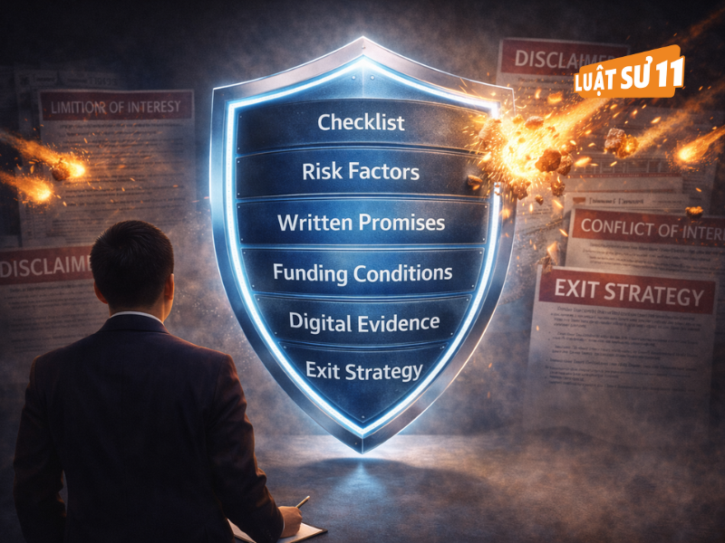 Luật sư 11 khuyến nghị xây “kế hoạch B” ngay khi thẩm định: nếu có dấu hiệu sai lệch, trình tự thông báo – thu thập chứng cứ – kích hoạt điều khoản khắc phục – thương lượng – và sau cùng mới kiện tụng.