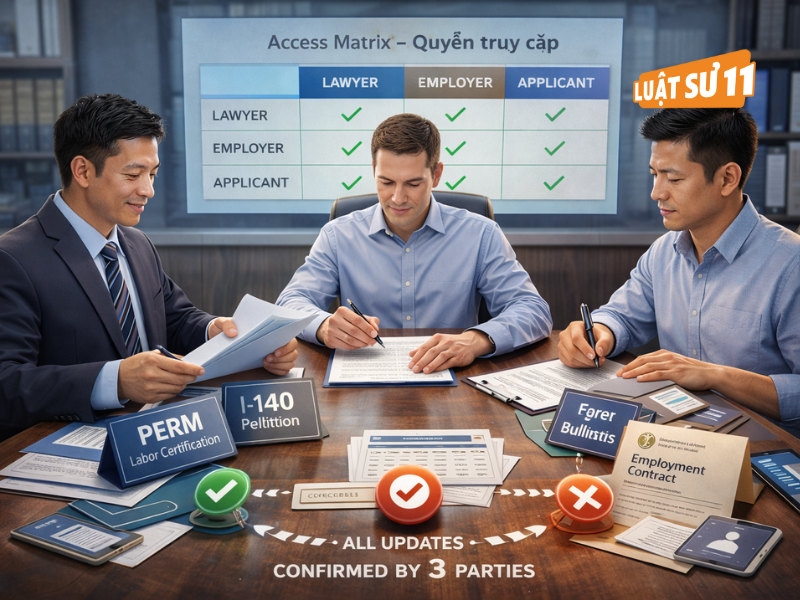 Trong toàn bộ vòng đời hồ sơ, mỗi quyết định tài chính hay thay đổi dữ liệu quan trọng đều cần biên bản hoặc email xác nhận 3 bên để tránh hiểu nhầm. Luật sư 11 luôn khuyến nghị bảng quyền truy cập (access matrix) nêu rõ ai được xem – ai được sửa – ai phê duyệt, giúp dập tắt xung đột lợi ích ngay từ đầu và củng cố tính minh bạch.