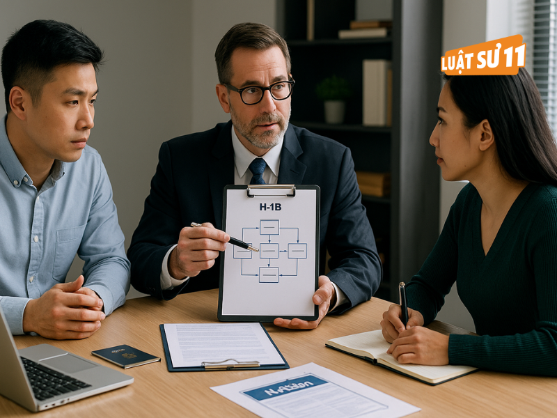 Quy trình 4 mốc với Luật sư 11: Đánh giá → Chuẩn hóa → Nộp → Theo dõi/RFE. Mỗi mốc đều có danh mục bàn giao rõ ràng để HR và ứng viên phối hợp nhịp nhàng. Một luật sư di trú mỹ giỏi không chỉ “điền form” mà còn kể câu chuyện hồ sơ nhất quán.