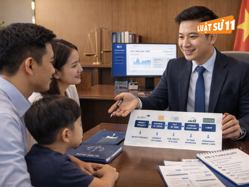 Quy trình Đi Mỹ diện đầu tư EB-5 gồm 7 bước rõ ràng: chuẩn hóa nguồn tiền, chọn dự án, nộp I-526E, hoàn tất DS-260, vượt qua phỏng vấn, duy trì đầu tư và chốt bằng I-829. Hãy giữ dữ liệu đồng nhất, sắp xếp chứng từ khoa học và chủ động theo dõi tiến độ. Theo Luật sư Nguyễn Thành Huân – Giám đốc Công ty Luật sư 11, chuẩn bị trước luôn rẻ hơn sửa sai sau này; đội ngũ Luật sư uy tín Thành phố Hồ Chí Minh sẵn sàng đồng hành trong từng bước hồ sơ.