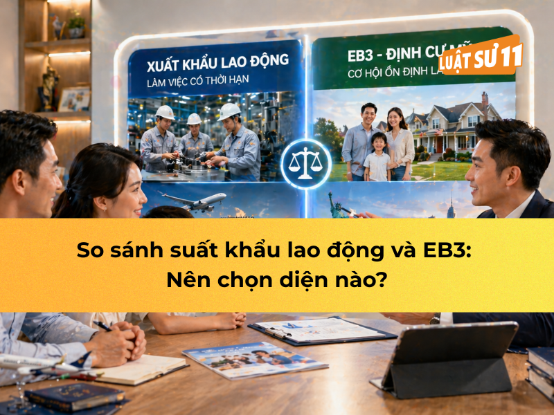 So sánh suất khẩu lao động và EB3 để chọn hướng đi phù hợp về chi phí, thu nhập và định cư Mỹ năm 2026. Luật sư 11 phân tích dễ hiểu cho người lao động.