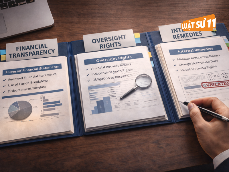Tầng chế tài nội bộ: cơ chế thay thế đơn vị quản lý khi vi phạm trọng yếu, nghĩa vụ thông báo thay đổi dự án và biểu quyết của nhà đầu tư.