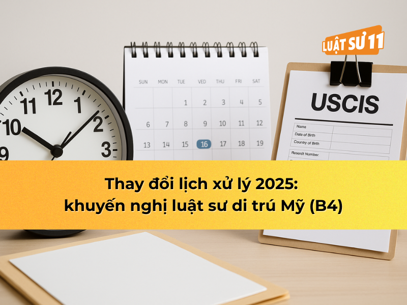 Năm 2025, chìa khóa quản trị thời gian nằm ở việc hiểu đúng USCIS processing time, phối hợp với Visa Bulletin và chuẩn hóa hồ sơ ngay từ đầu. Đồng hành cùng luật sư di trú Mỹ, bạn sẽ sở hữu chiến lược nộp – theo dõi – phản hồi tối ưu, giảm rủi ro RFE và chốt kết quả đúng nhịp. Theo luật sư Nguyễn Thành Huân và đội ngũ Luật sư 11, kỷ luật dữ liệu và thời điểm thông minh luôn thắng “đoán mò” và chờ may mắn. Cần bản kế hoạch cá nhân hóa? Hãy kết nối để được phân tích cụ thể cho hồ sơ của bạn.