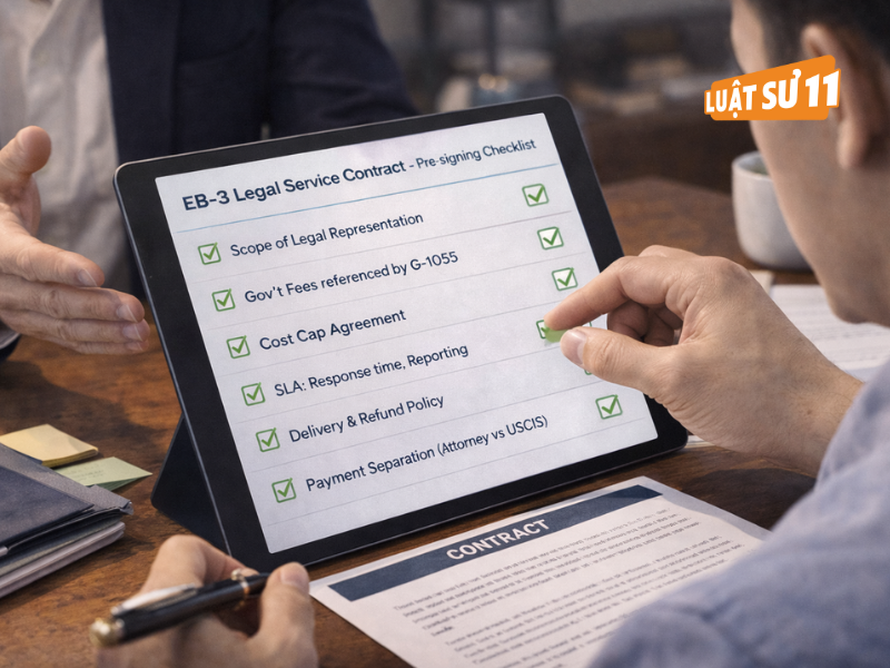 - 5) Checklist hợp đồng dịch vụ: phạm vi, trần chi – SLA, bảo vệ đúng vai trò văn phòng luật sư di trú Mỹ diện EB3